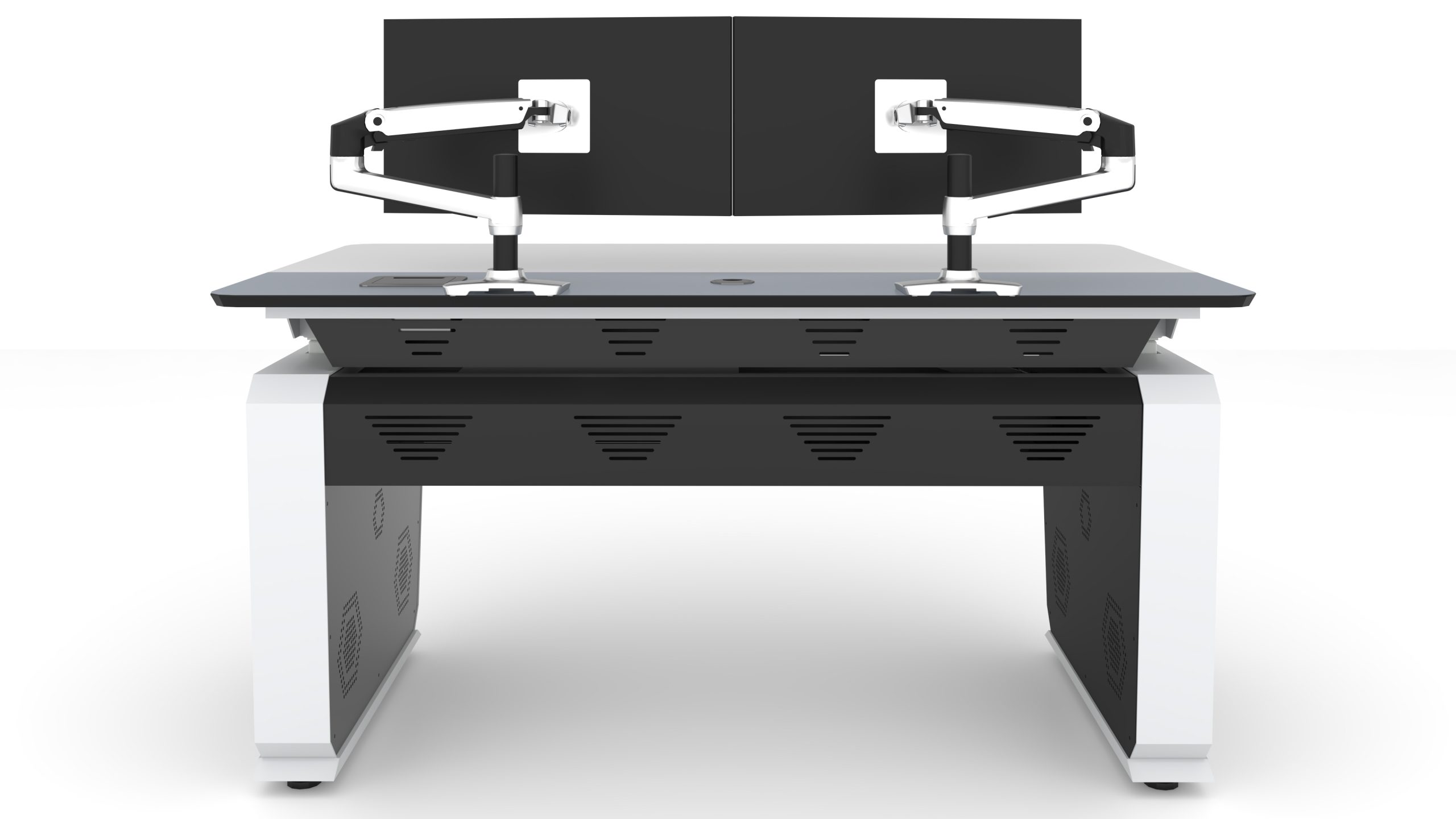Diseño moderno y elegante de nuestra consola ergonómica ofrece una solución innovadora para el entorno de trabajo al permitir que el operador esté libre de CPUs dentro del mobiliario técnico.